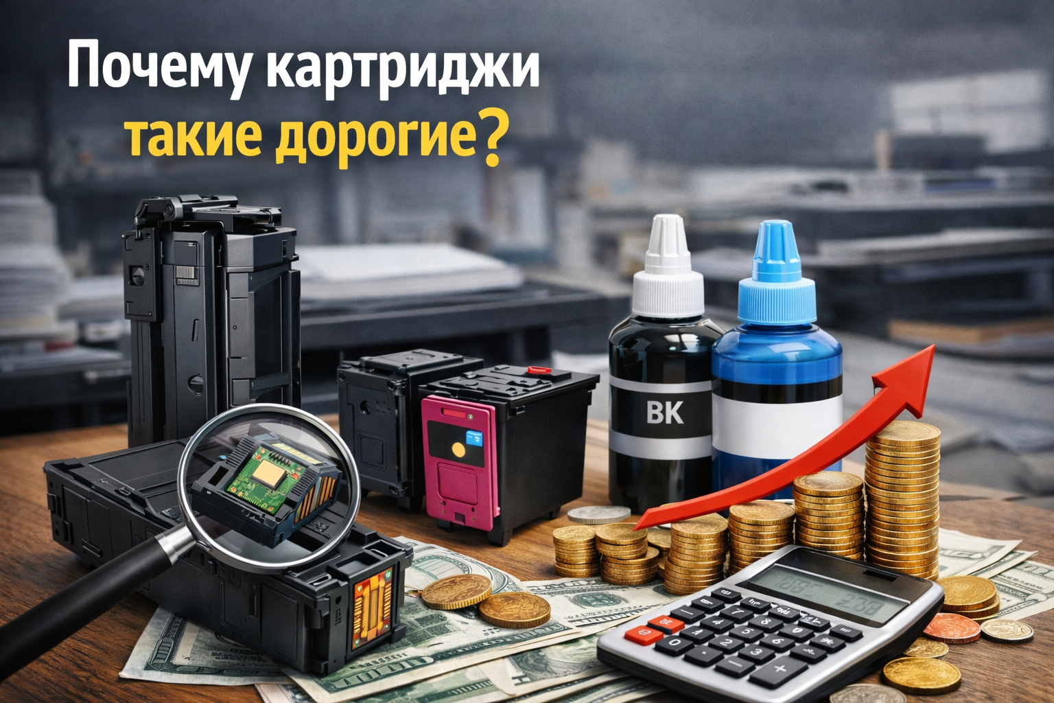 Многие владельцы офисной техники рано или поздно задаются вопросом: почему картриджи такие дорогие, особенно если сравнивать их стоимость с ценой самого принтера. Нередко бывает так, что устройство для печати стоит относительно недорого, а вот расходных материалов приходится покупать на значительно большую сумму. Разберёмся, почему так происходит и из чего складывается цена.